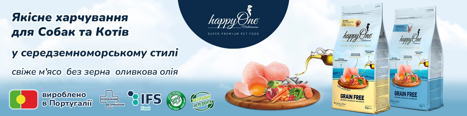 happyOne Mediterraneum – полнорационное питание для животных в средиземноморском стиле без зерна